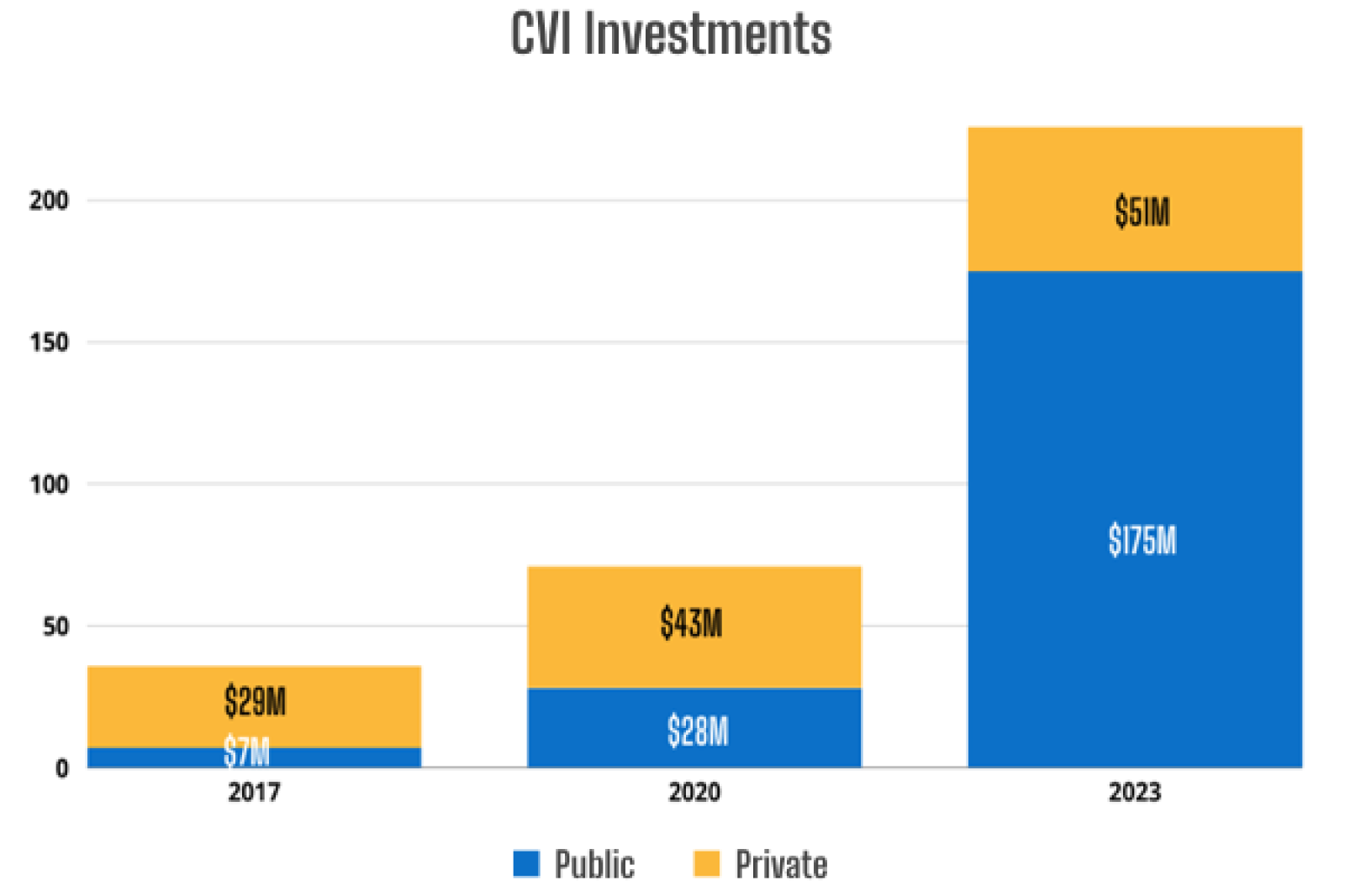 Annual funding for CVI strategies has increased by $191 million since 2017, with government funding from the State, County, and City now leading the way in investments.